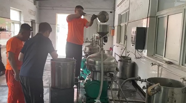 不难看出该物料经离心机分离后明显的澄清度。像这种全自动离心机(碟片分离机)的使用,相信大多数生物企业早已不陌生,而这种离心机设备之所以能够被广泛应用,说明它在生产过程中的确起到了关键作用,如果说植物提取有段位,那这种离心机的使用,就是提升其段位的关键“法宝”之一,其利用不同物质在离心力场中不同的离心速度,将混合物中不同成分分离,以实现物质的提取、分离和浓缩等目的,省人力物力的能力也自然不在话下。